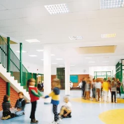 Système de plafond suspendu offrant une haute isolation acoustique entre deux pièces, lorsque les cloisons ne sont pas toute hauteur. Il offre également une isolation verticale aux bruits aériens, aux bruits de ventilation, etc. Ecophon Combison Duo A se pose sur une ossature apparente T24. Chaque panneau est démontable.