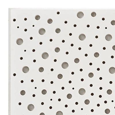 Plaque de plâtre Cleaneo® conforme à la norme NF EN 14190, avec perforations rondes Ø 8, 15 et 20 mm en continu sur la totalité de la plaque. Elle comporte au dos un voile acoustique pour assurer l’absorption acoustique.