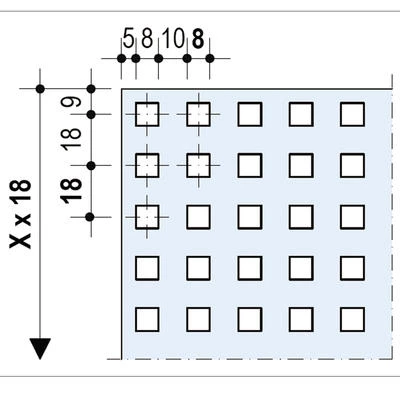 Plaque de plâtre Cleaneo® conforme à la norme NF EN 14190, avec perforations carrés de 8 mm en continu sur la totalité de la plaque. Elle comporte au dos un voile acoustique pour assurer l’absorption acoustique.