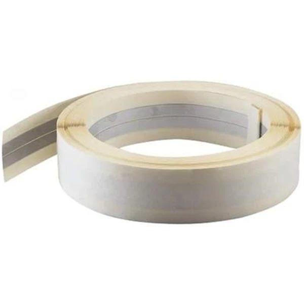 Bande à joint papier, armée de deux feuillards métalliques flexibles pour réaliser le joint entre 2 plaques de plâtres Placo® au niveau d’un angle saillant.