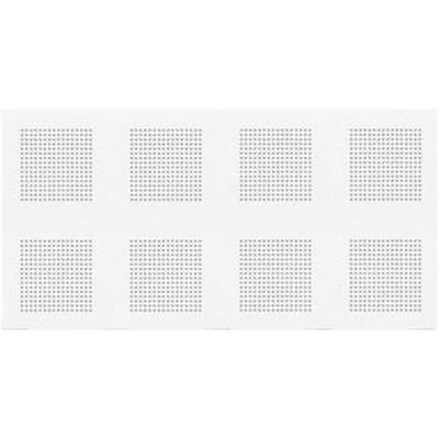 Plaque de plâtre décorative et acoustique à perforations carrées et 4 bords amincis. Pour la réalisation de plafonds décoratifs et acoustiques non démontables. Prêt à peindre.