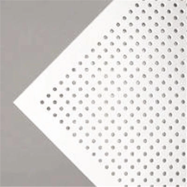 Dalle en plaque de plâtre peinte à perforations rondes.