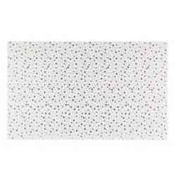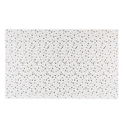 Plaque de plâtre lisse et à perforations rondes et aléatoires, de bord droit déjà poncé et primairisé, permettant la neutralisation des principaux composés organiques volatifs (COV).