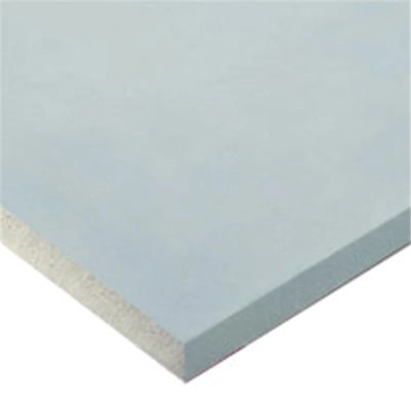 La plaque de plâtre GLASROC® H Ocean BA18 de chez Placoplâtre est composée d’un cœur superhydrofugée (<3%) et de parements constitués d’un voile non-tissé à base de fibres de verre insensible à l’humidité, facilement identifiable grâce à sa couleur bleu clair.