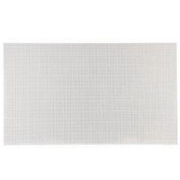 Plaque de plâtre lisse et à perforations carrées et régulières, de bord droit déjà poncé et primairisé, permettant la neutralisation des principaux composés organiques volatifs (COV).
