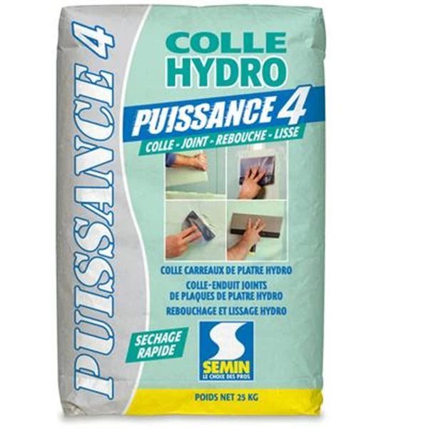 Colle-enduit hydro spéciale salle de bain : Pour monter les cloisons de carreaux de plâtre hydro. Pour réaliser les joints de plaques de plâtre hydro à bords amincis en association avec une bande à joint.