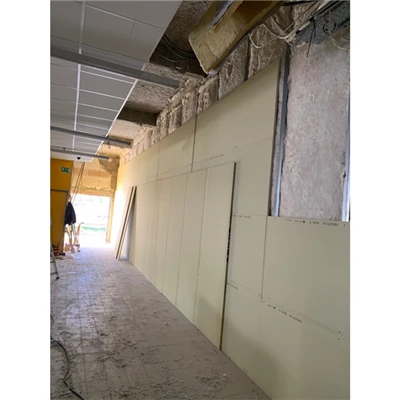 - Parois verticales répondant à des exigences acoustiques, incendie et/ou de résistance aux chocs élevées.