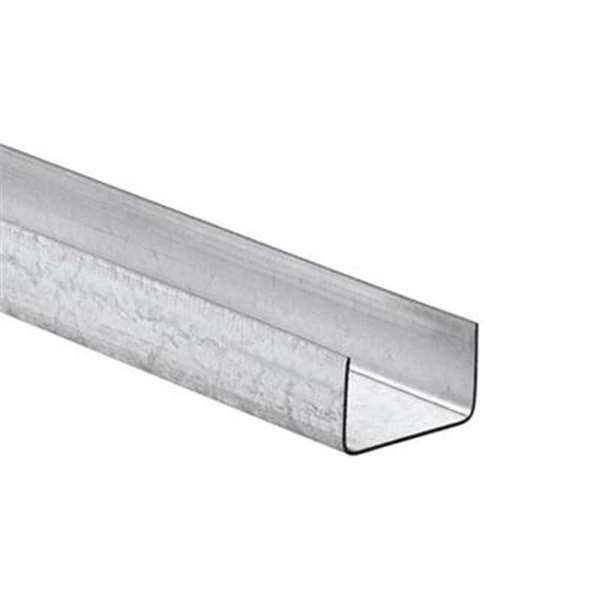 Profilé métallique en acier galvanisé Z275, en forme de U destiné à la mise en oeuvre de cloison grande hauteur Prégymétal Industrie. Le choix de l’épaisseur d’acier dépend des hauteurs de l’ouvrage.